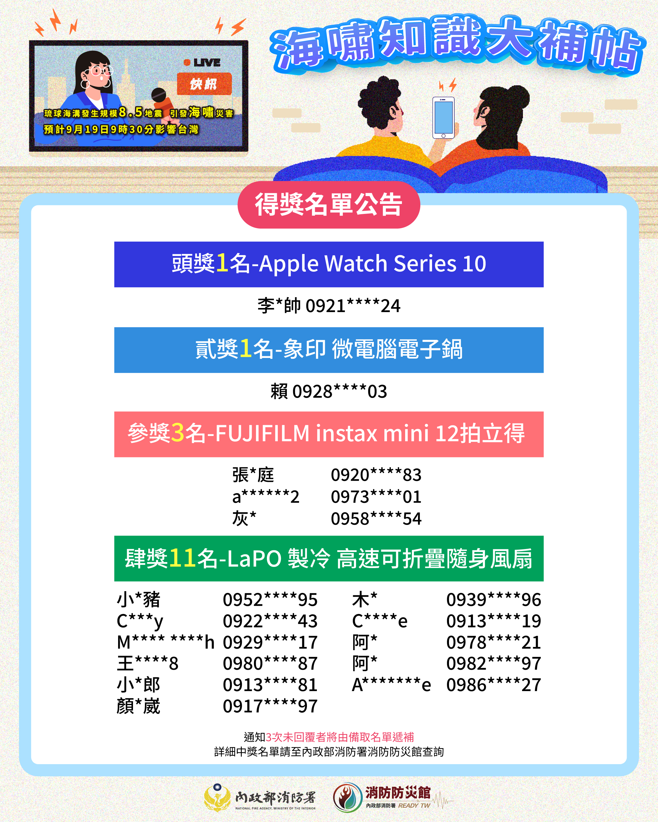 海嘯知識大補帖-宣導活動中獎名單